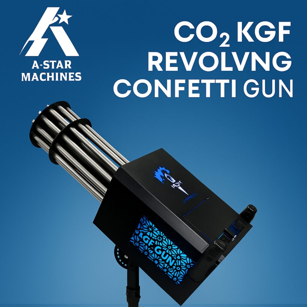 Elevate your weddings, parties, concerts, and corporate events with the Revolving CO₂ KGF, Monster, and Confetti Machine Gun from A Star Machines. Designed with 360° rotation and high-powered smoke bursts, this machine delivers cinematic entrances, LED lighting effects, and confetti showers that captivate audiences from every angle. Perfect for grand wedding entries, DJ performances, live shows, and brand activations, it is safe for indoor and outdoor use, easy to operate, and built for repeated professional events. With customizable LED colors, smoke intensity, and confetti types, along with factory-direct quality, pan-India delivery, and expert technical support, the Revolving CO₂ KGF / Monster Gun ensures every celebration becomes a visually stunning and unforgettable experience.